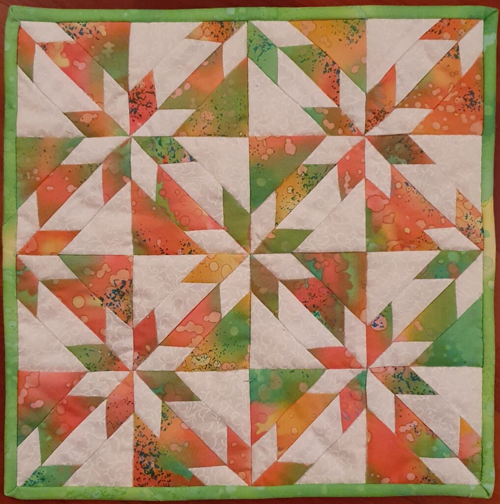 Hunter’s Star can be a tricky block to make due to the bias-cut edges and there are several different ways to make it, but this course takes a straightforward approach which everyone can use to find success.  Use two contrasting colours or many to get the result you prefect.  Pre-cuts (layer cakes) or meterage can be used.  Suitable for all abilities.