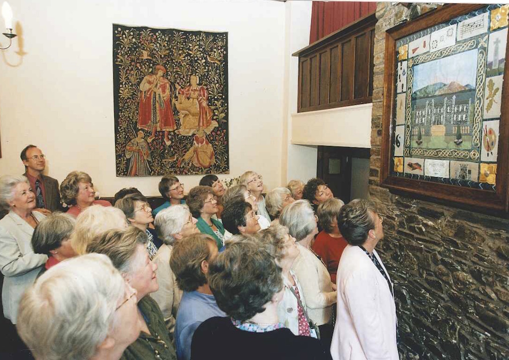 The Millennium Hanging currently adorns the chimney breast in the main corridor, and is particularly visible from the main staircase (minus antlers!), fittingly facing the 20th anniversary Stained Glass Window by Bill Davies. It represents an enormous amount of work and skill, with many people collaborating to produce a work which reflected Higham’s spirit at the turn of the century.