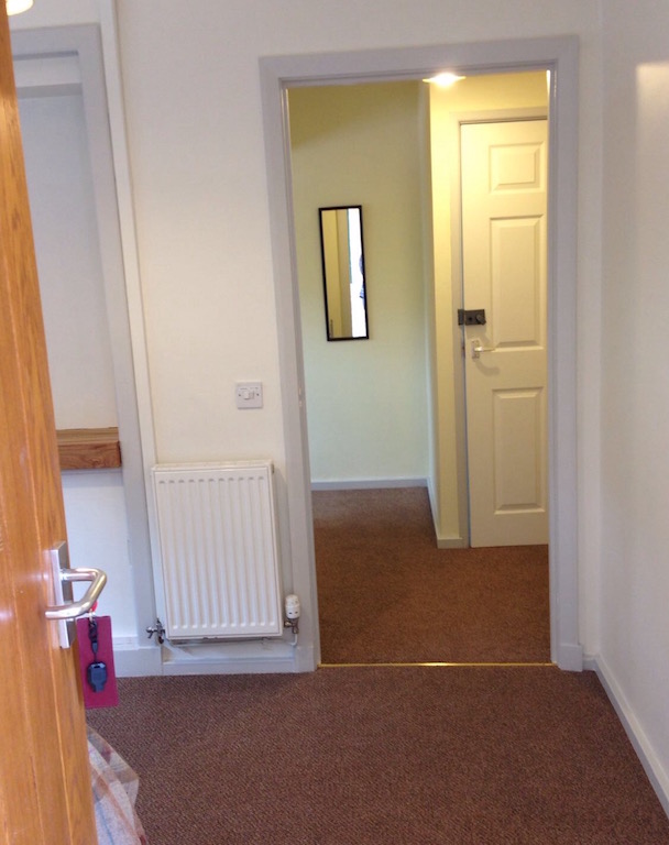 The former kitchen, now a single ensuite with private access to the outside and inside, using the existing fully accessible bathroom as its ensuite. Colour scheme matches that of the new Binsey, letting the adornments stand out in a distinguished way. The colours in the blind are picked up in the soft furnishings and even a foxy picture in the vestibule!