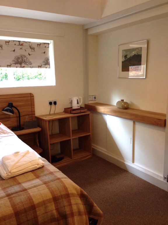 The former small double has been transformed into a single en-suite. The furniture has been designed to save space but gives plenty of shelving along the wall. We feel the space works better as a single, especially as the Cottage has two twins now anyway.