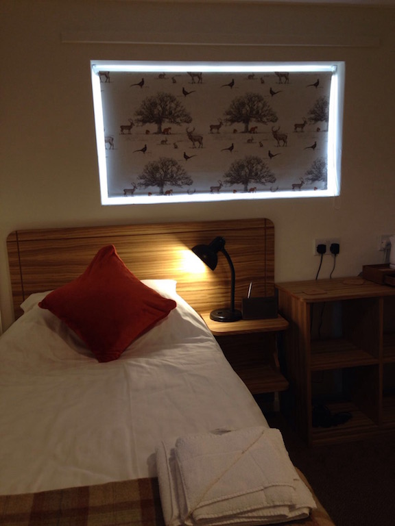 Do you notice how Elva looks just like a regular bedroom? That is deliberate, as it has been designed to simply be that, except that if someone were in a wheelchair, they could use it. It is a normal, regular bedroom usable by anyone. The neighbouring twin room, Binsey, also has space for a wheelchair to gain access to the bedroom space. An accompanying carer could stay in any of the Cottage bedrooms and have easy access to Elva.