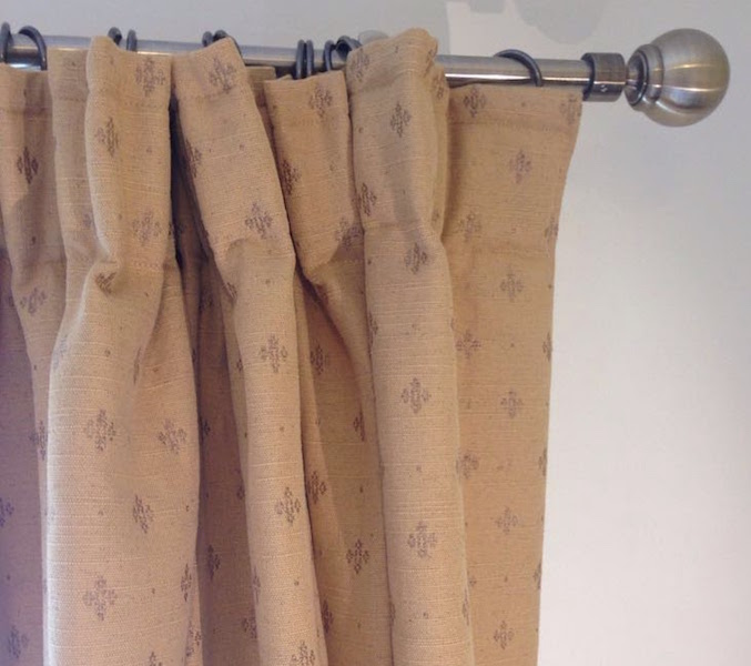 The material chosen reflects the scheme’s queues taken from the framed piece of wallpaper on the feature wall, itself of a colour dictated by the wallpaper sample. We decided not to paper the whole wall in this bedroom because of the small size of the wall and the fact that we wanted the curtains to be one of the main features.