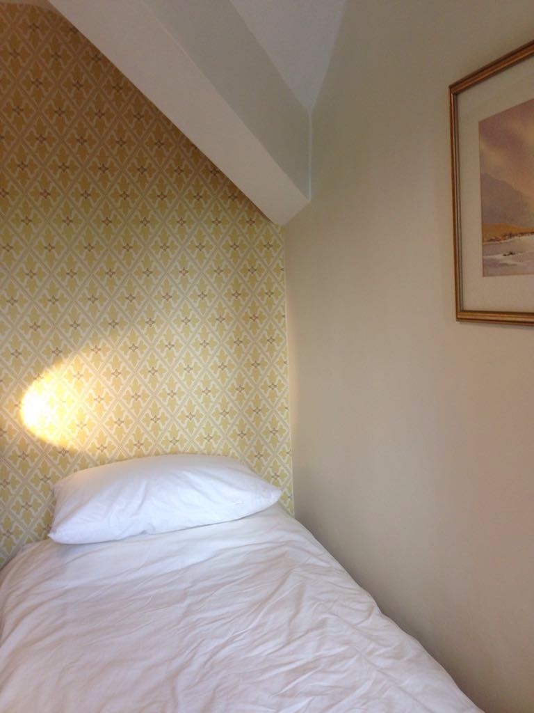 Both rooms are awaiting new fitted headboards and shelving units in Light Oak. These will enable slightly easier movement and will give the rooms a slightly more updated, practical feel. One picture is hanging on the wall facing the feature wall and that is it, as the minimalist approach will suit our aims to keep the rooms practical and pleasant. Both of these rooms had the challenge of having small windows, so are limited on light. Indeed, Room 4 has had its skylight boarded up as it annoyed some people who wanted not to get up with the lark!