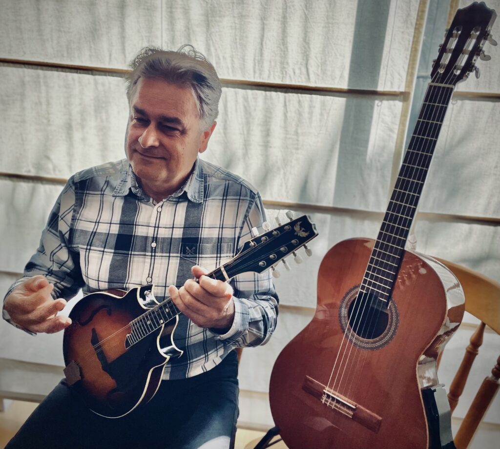 Whilst studying at the Royal Academy of Music, Roland won the prestigious Julian Bream Prize in a competition that was adjudicated by the world-renowned guitarist himself. After studying, he quickly established himself as a notable player in guitar ensemble and chamber music, leading the English Guitar Quartet and Segovia Trio. His latest group, established 2001, is the Modern Guitar Trio which exclusively performs works of its three players. Roland has performed throughout UK, Europe, Canada, Australia, Israel and Venezuela, has appeared on radio and TV, recorded Rodrigo’s Concierto de Aranjuez with London Philharmonic Orchestra, and has worked regularly with the Royal Ballet including on stage with them at the Royal Opera House, on tour and film. Roland took up the mandolin to supplement his guitar playing activities. Apart from working on classical mandolin he was drawn to Celtic music and bluegrass, and was inspired by the playing of Chris Thile and Mark O’Connor. At Morley College, London, he ran several courses for mandolin, guitar and banjo. He has arranged music for mandolin duo and mandolin orchestra, and composed pieces for solo mandolin. He recently played mandolin on an album by the German singer-songwriter and producer Amin Jan Sayed.