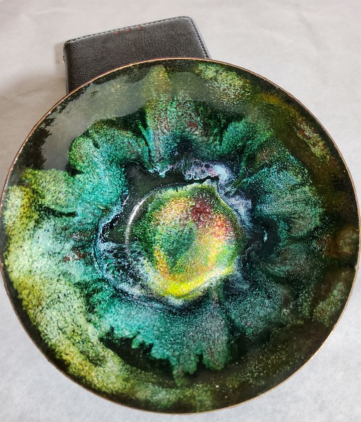 "As an enameller I like to experiment with colours and different types of enamel to produce new interesting effects as well as traditional skills to obtain the best results or what ever the project may be. Initially I was a student at Rush Green Art College and then later in my working my life trained as an enameller, eventually moving to where I now in a rural setting mainly for inspiration and a larger studio. The increased space has allowed me to work with large enamel bowls where there is scope for interesting shapes and styles. As a teacher now at Higham Hall I can pass on this knowledge."